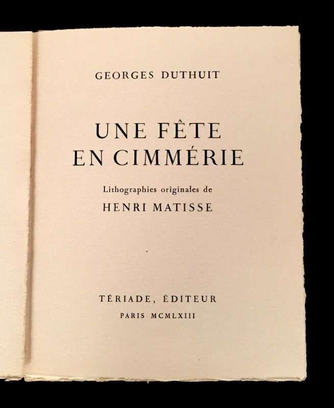 (Art : Modern : Livres d'artistes). (Matisse, Henri, illustrator) Duthuit, Georges. Une fête en Cimmérie. Paris: Teriade, 1963.
