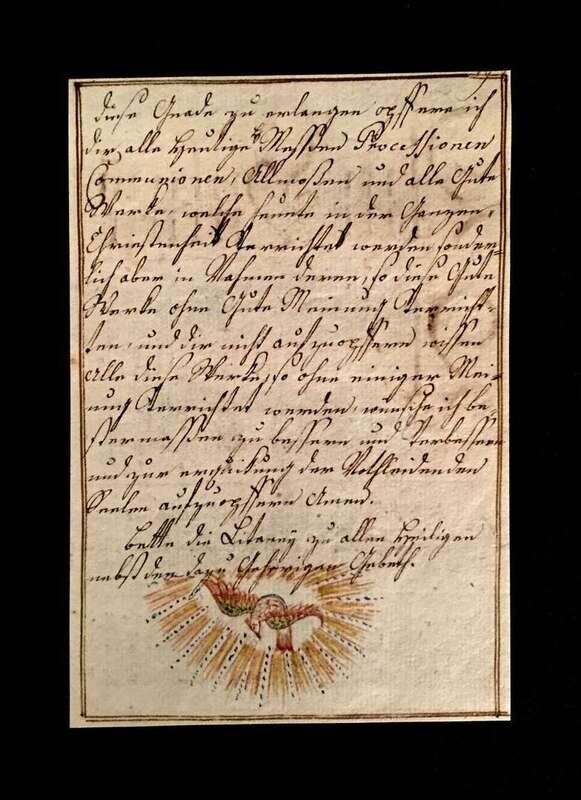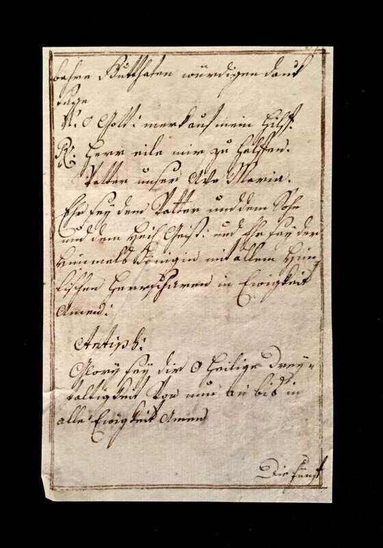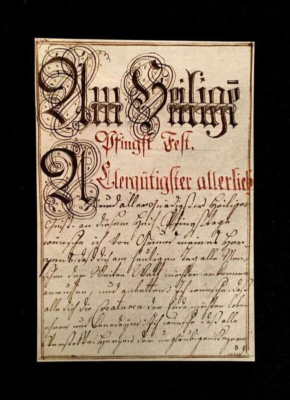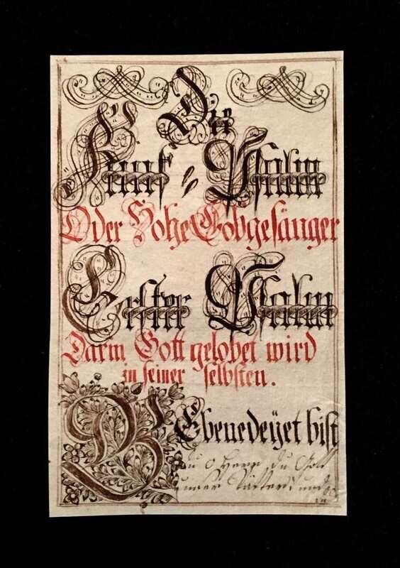 2 pieces. (Fraktur). Manuscript German-language Membra Disiecta. N.p., n.d.: presumed South German production, ca. 1700-1750. Small 8vo, 5 3/8 x 3 5/8 in; 92 x 137 mm. Disbound, as evidenced by manuscript catch-words; likely trimmed to ink-ruled borders, very moderately toned. Assumed household production, popular religious content ("Pfingst fest" and "Psalmen" ) with decorated initials & bird motifs.