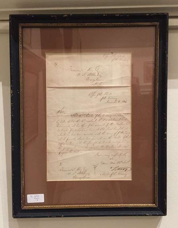 (Autographs : American). (Key, Francis Scott - recipient.) Maxcy, V(irgil.) Letter Signed. Washington: Office of the Solicitor of the Treasury, November 8, 1834. 1 p., small folio; horizontal creases along old folds. Signed by Maxcy as Solicitor of the Treasury, enjoining Francis Scott Key as "U.S. Attorney [in] Georgetown," to "enter satisfaction on the judgement received against Mr. Yeaton." Maxcy, Virgil, 1785 - 1844, First solicitor of U. S. Treasury; killed by explosion of a gun aboard the U.S.S. Princeton while a guest of President John Tyler.