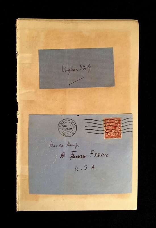 (Autographs : Literary). 1 piece. Mounted postal envelope fragments with the autograph signature of Virginia Woolf, and address partly in her hand.