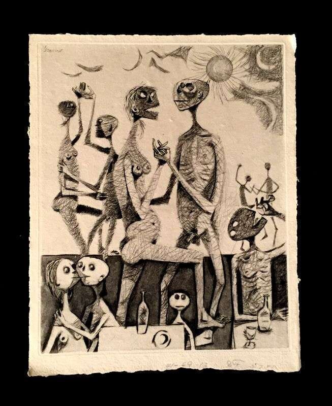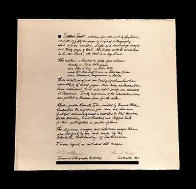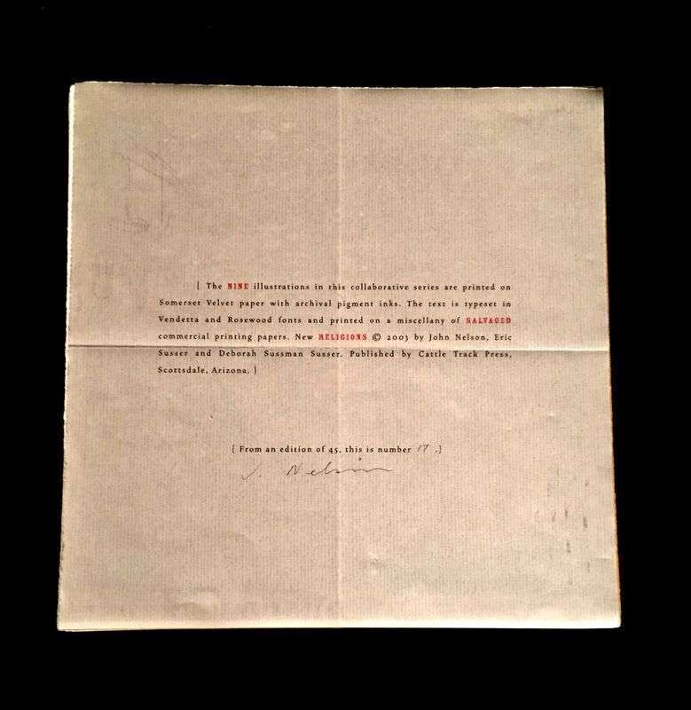 (Prassinos, Mario, illustrator.) [Queneau, Raymond.] [L'Instant fatal.] [Paris], [1946]. The portfolio suit of 15 etchings only. Original boards chemise and slipcase. * Hon -en (Katedral) - Historia. Stockholm: Moderns Museet, (1967). Folio, original foldout stapled color wrappers. Contents printed on newsprint. In custom decorated chemise. * Kent, Sister Mary Corita; Cox, Harvey, et al. Sister Corita. Philadelphia: Pilgrim Press, (1968). Folio, original cloth, in original box holding 30 loose color plates and folded poster. Some wear to box. * (Hansen, Robert, illustrator.) Endor, S. Guy. Selections from Satan's Saints. (Los Angeles: Tamarind Lithography Workshop), (1965). #1/20 (of 44) signed by Robert Hansen. Square folio, loose as issued in original black and red cloth chemise and red cloth slipcase. With 52 original lithographs, tissue guards. * (Nelson, John, illustrator.) Susser, Eric and Deborah Sussman. {New Religions.} Scottsdale: Cattle Track Press, 2003. #17/45 signed by John Nelson. Square folio, loose as issued, in black fall-down cloth box. With 9 color plates, titled, numbered and signed in pencil. Minor wear, unless otherwise indicated.
