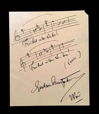 1 piece. ca. 1900-1920. 8 bars from his opera "Louise" on 2 hand-drawn staves with holograph libretto. 8x6 1/2 inches; 200x165mm - sheet-size. All dark and strong.