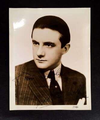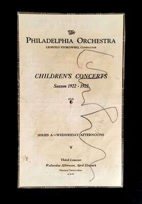 3 Pieces. (Autograph material). Primarily inscribed and signed photos. Classical Music Conductors: Barbirolli, John. Photo inscribed and signed. Silver print, 10 x 8 inches; 254 x 202 mm; minor creasing. Bust portrait. 1940. Inscribed and signed in ink at bottom third of image, stong and clear against the brown tones of the image. * Stokowski, Leopoldo. Philadelphia Orchestra Children's Concerts 1922 - 1923 Season program cover signed in pencil. Light creasing, minor staining, mounted with printed integral leaf to flexible board. Large, clear signature. * Walter, Bruno. Photo inscribed and signed. Silver print, 10 x 8 inches; 254 x 202 mm; light creasing to edges, small repaired vertical tear at center top margin, just touching body of image. Bust portrait. Ca. 1950. Inscribed in slightly shaky blue ink at bottom center left.