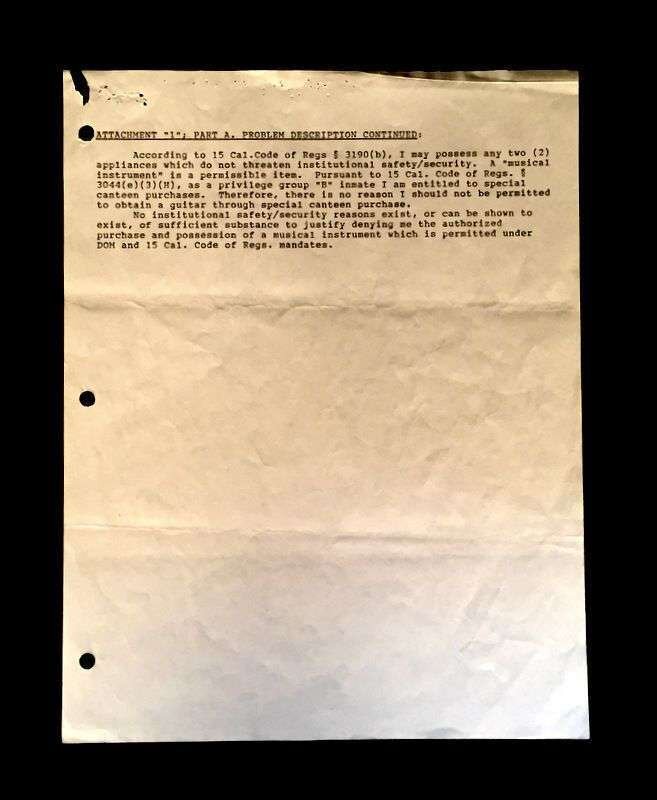 (Autograph Material : Notorious Personages). Manson, Charles. Document Signed. Corcoran, CA., January 20, 1977.