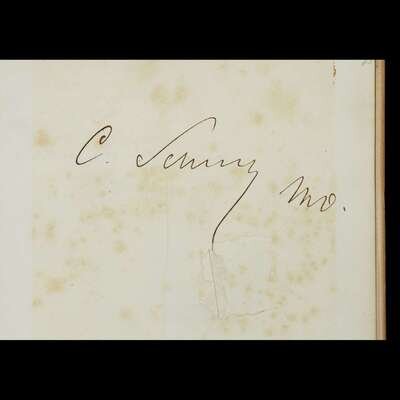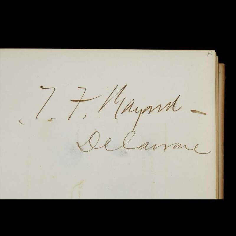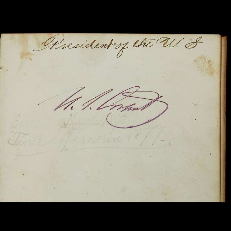 1 Vol. Autograph Album. United States. Ca. 1874 (and later; some earlier, interpolated material). 12mo, contemporary morocco, gilt; rubbed and worn, spine defective. Approximately 60 leaves, autograph signatures and mounted autograph material primarily on rectos. Includes autograph signatures of President U. S. Grant, approximately 49 U.S. Senators and approximately 105 U.S. Congressional representatives, other U.S. public officials.