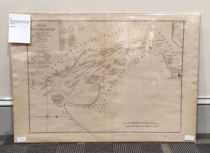 "1 Piece. Engraved Map. Fisher, Joshua. ""Baye de la Delaware."" Paris, 1777. First state. 18 1/4x25 inches; 464x635 mm, full margins. Lightly and uniformly attractively toned.Snyder 265e"