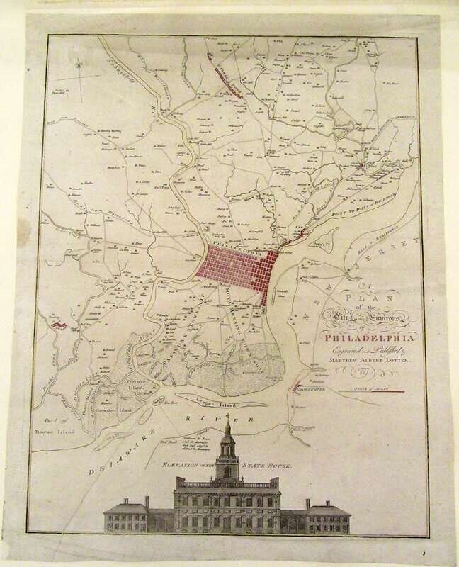 (Maps : American Subjects). Scull, Nicholas; Heap, George. ""A Plan of the City and Environs of Philadelphia."" Augsburg: Matthew A. Lotter. 1777.