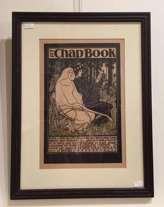1 Piece. Lithographic Poster in black and white. Bradley, Will H. "The Chap-Book." (Chicago), 1895. 20 1/2 x 13 3/4 inches; 520 x 350 mm - sheet size. Evenly and attractively toned. Condition B+/A-