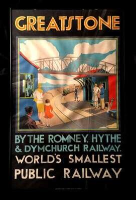 1 Piece. Color Lithographic Poster. Roberts, N. Cramer. "Greatstone by the Romney, Hythe and Dymcurch Railway." London: Vincent Brooks Day and Sons, (1927). Linen backed, 39 1/2 x 25 1/8 inches; 1,003 x 638 mm. Condition A-. Framed.