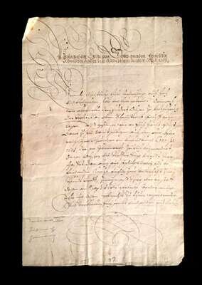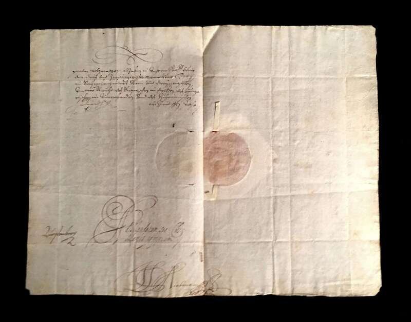 is one among many important manuscripts which John Frederick Lewis, a highly regarded philanthropist, lawyer, and early 20th-century collector, used as primary source material for a comprehensive genealogy of his forbears. His chronological narrative was meant to chart the various world-historical developments and circumstances which ultimately led to the confluence of Mr. Lewis' Continental ancestors and those of the Mayflower Colony, and it extended even to his own lifetime. Housed in altogether fifteen portfolio volumes, the project was the culmination of decades of painstaking research and discerning collecting of the highest order. Most of the manuscripts in Mr. Lewis' collection have not appeared at auction for a century, or more, as evidenced by the clipped catalog descriptions which accompany them.
