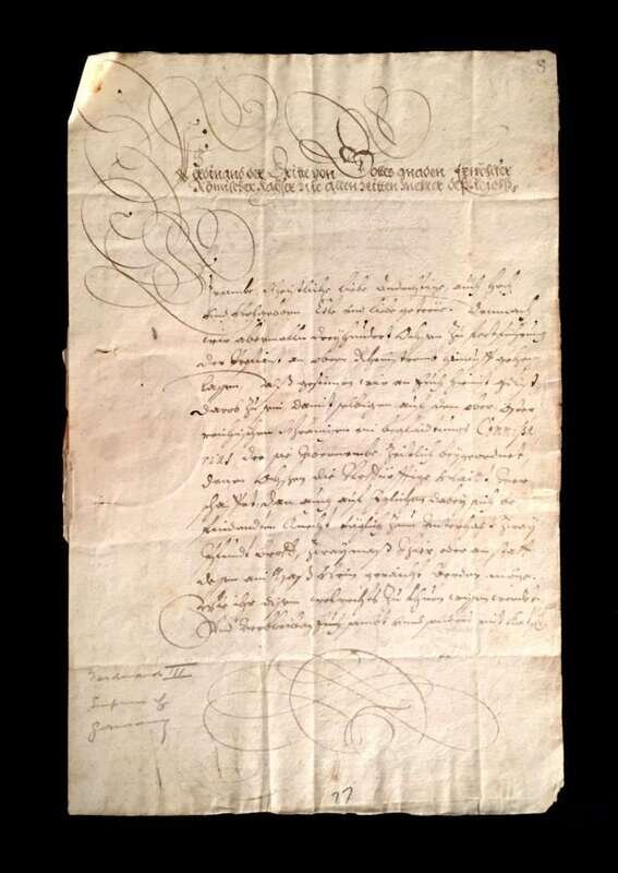 (Estate of John F. Lewis). Ferdinand III, Holy Roman Emperor. Document Signed. 28 July, 1639. Docketed, with imperial seal.