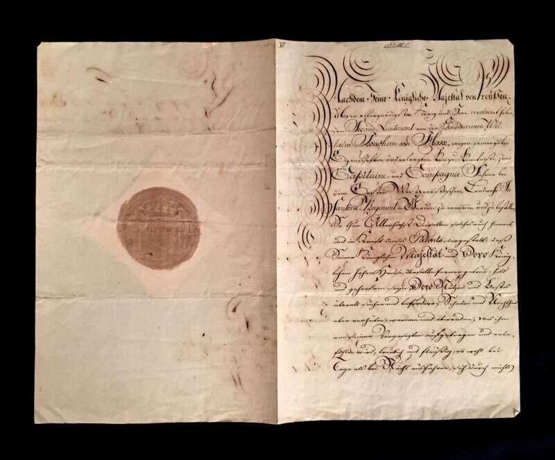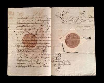 The document above is one among many important manuscripts which John Frederick Lewis, a highly regarded philanthropist, lawyer, and early 20th-century collector, used as primary source material for a comprehensive genealogy of his forbears. His chronological narrative was meant to chart the various world-historical developments and circumstances which ultimately led to the confluence of Mr. Lewis' Continental ancestors and those of the Mayflower Colony, and it extended even to his own lifetime. Housed in altogether fifteen portfolio volumes, the project was the culmination of decades of painstaking research and discerning collecting of the highest order. Most of the manuscripts in Mr. Lewis' collection have not appeared at auction for a century, or more, as evidenced by the clipped catalog descriptions which accompany them.