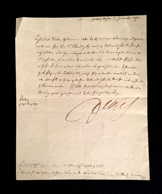 (Estate of John F. Lewis). Friedrich Wilhelm II, King of Prussia. 1 piece. Letter Signed. Potsdam, 1791.