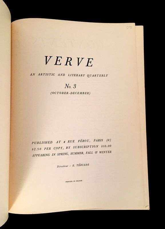 (Art : Modern : Periodicals). Verve: An Artistic and Literary Quarterly. Paris, (1938). No. 3.