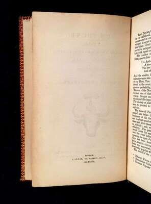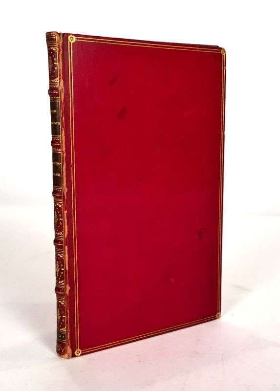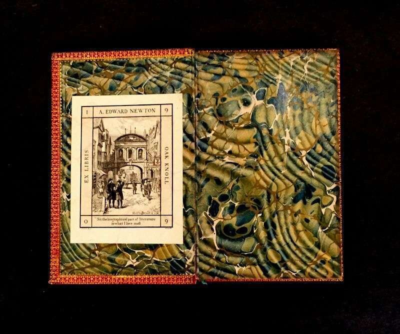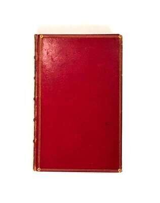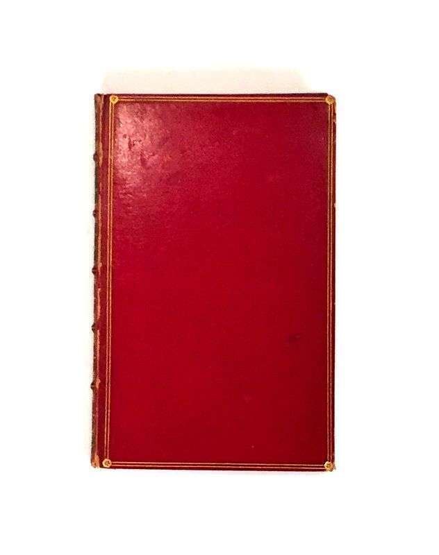 1 vol. 12mo, later 19th century full polished double gilt fillet paneled red calf, gilt floral spine compartment, inner dentelles gilt, brown morocco spine labels, original printed pink wrappers bound in, by Tout; corners and joints a little rubbed, covers occasionally scuffed, front free endpaper detached (but present). Frontispiece and 4 full-page illustrations, vignettes. 2 p. advertisements at back. Internally clean. Bookplate ("biographical part of literature") of A. Edward Newton on front pastedown.