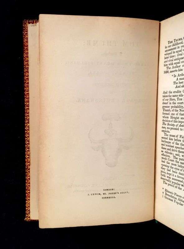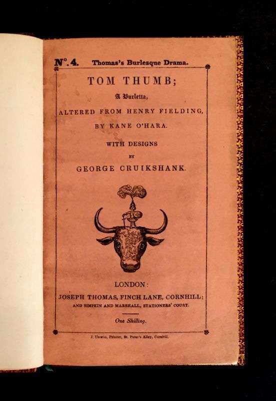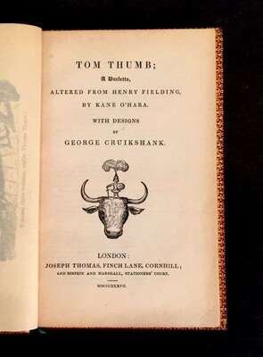 (Illustrated and Private Press). (Cruickshank, George, illustrator.) Tom Thumb: A Burletta, Altered from Henry Fielding by Kane O' Hara. London: Joseph Thomas, 1837.