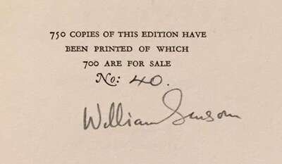 1 vol. #40/750 signed by William Sansom. 8vo, original 1/2 brown cloth and marbled boards, gilt-lettered spine, corners a little bumped, other light edge wear. With 5 plates by Lucian Freud. Minor discoloration to endpapers, internally clean. Untrimmed edges.