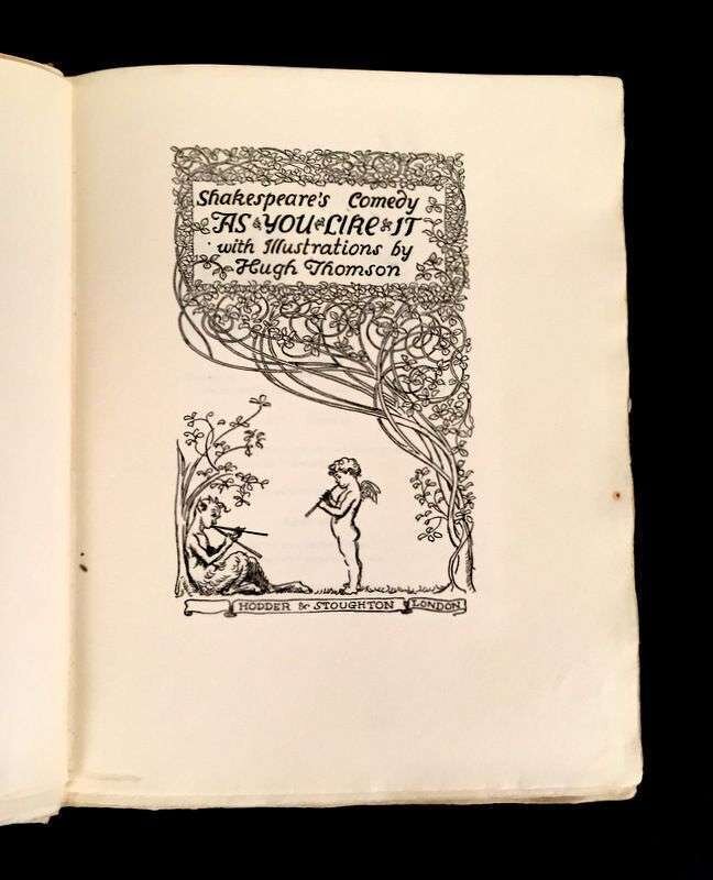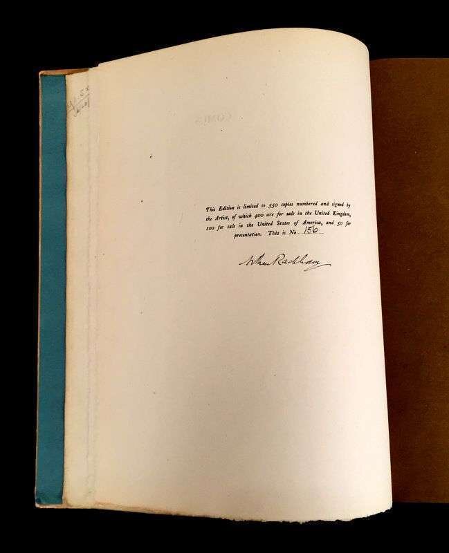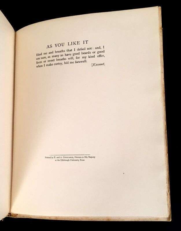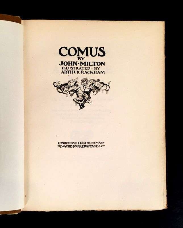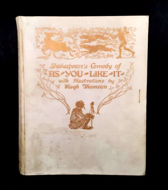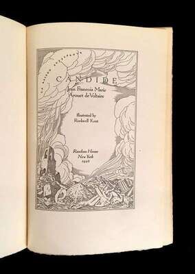 (Illustrated and Private Press). 3 Vols Illustrated Books: (Kent, Rockwell, illustrator.) Voltaire, Jean Francois Marie Arouet de. Candide. New York: Random House, 1928. #184/1470 signed by Rockwell Kent. 4to, original gilt-pictorial and lettered brown cloth; occasionally scuffed, light edge wear, spine starting to darken. Illustrated throughout. Some dust smudging to front endpapers. * (Rackham, Arthur, illustrator.) Milton, John. Comus. London: Heinemann, [1921]. #156/550 signed by Arthur Rackham. 4to, original gilt-pictorial and lettered vellum-backed tan boards, t.e.g., other edges untrimmed; scuffed, a few small blisters, corners bumped, other edge wear. With 24 mounted color plates, lettered tissue guards, black and white illustrations, pictorial endpapers. Internally clean. First Rackham edition. Latimore and Haskell p. 54 - 55. * (Thomson, Hugh, illustrator.) Shakespeare, William. As You Like It. London: Hodder and Stoughton, [1909]. #12/500 signed by Hugh Thomson. 4to original gilt-pictorial and lettered cream vellum, t.e.g., other edges untrimmed; occasionally a little scuffed, some minor dust smudging, ties gone. With 40 mounted color plates, lettered tissue guards. Some spotting to endpapers, darkened dust smudging to back endpaper gutter. Publisher's File Copy ink stamp on front free endpaper recto. Internally generally clean.