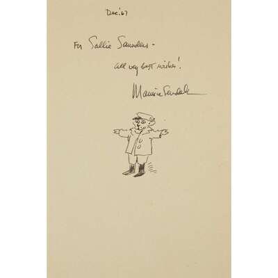 1vol. Small 4to, original brown cloth, color pictorial cover label; light edge wear, dust jacket (some wear at panel joints and edges, occasional minor dust smudging). Illustrated by Maurice Sendak. Internally clean. Presentation copy, inscribed to Sally Saunders, dated, "Dec. '67," and signed by Maurice Sendak on front free endpaper recto, also embellished with an original pen and ink drawing of the cat/milkman below the signed presentation.