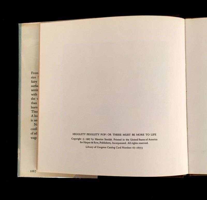 (Illustrated and Private Press). Sendak, Maurice. Higglety Pigglety Pop! (New York): Harper and Row, (1967). First edition. Presentation copy.