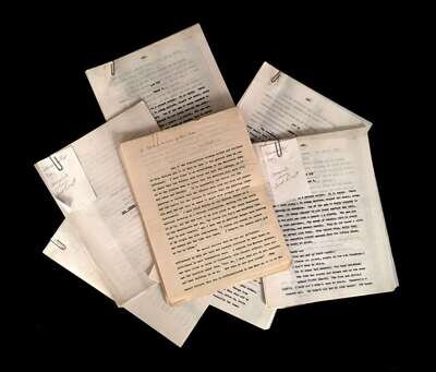 (Literature). Buck, Pearl S. Lot of Typescripts: [Untitled article], "...the similarities between Orient and Occident..." No place, no date [ca. 1960]. 23 pp, 4to, rectos only. Paper clip residue at head of first leaf. With ink and pencil corrections and additions mostly in another hand; with 5 pencil corrections in Buck's hand, one on p. 10, another on p. 16. * The White Bird, A Play in Three Acts. No place, (1958). 79 pp, 4to, rectos only, each act held together by a paper clip - some rust residue. 2 sets of the uncorrected typescript. Both clean and bright except for small areas of paper clip rust residue.