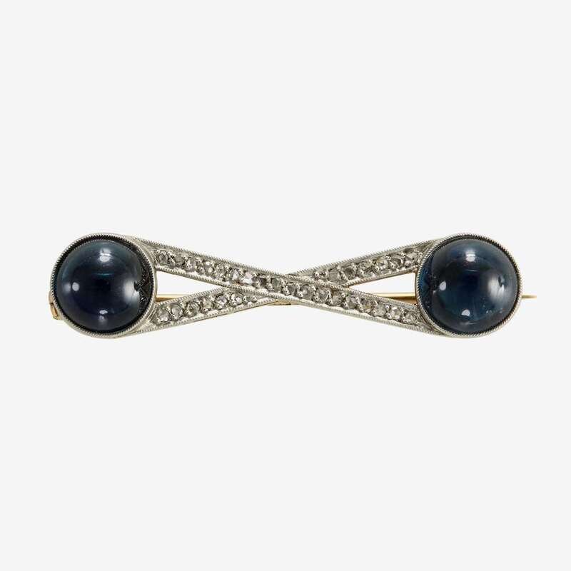A Fabergé sapphire and rose-cut diamond set platinum and gold brooch Fabergé, workmaster August Hollming, St. Petersburg, 1908-1917