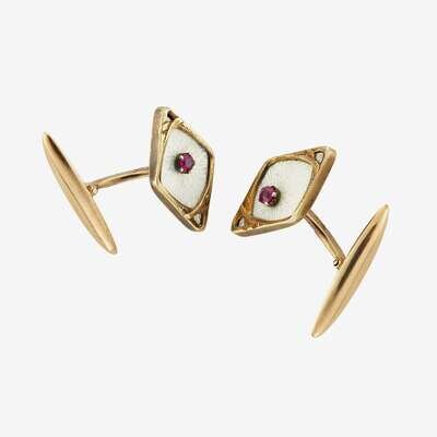 A pair of gold, guilloché enamel and ruby cufflinks unknown maker M.A., St. Petersburg, 1908-1917