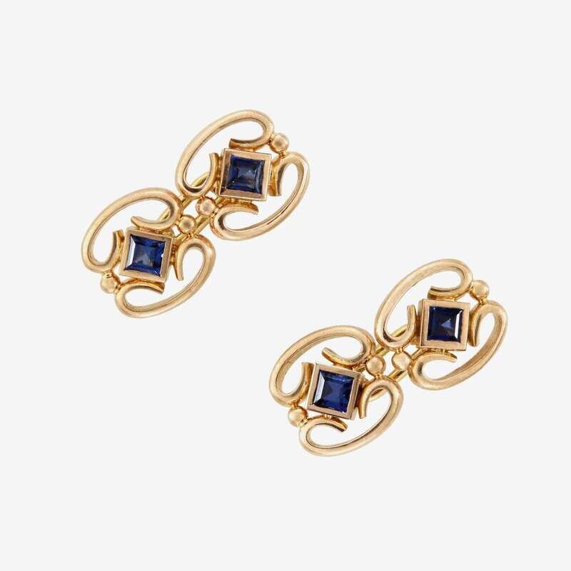A pair of Russian gold and sapphire cufflinks Erik Kollin, St. Petersburg, 1908-1918