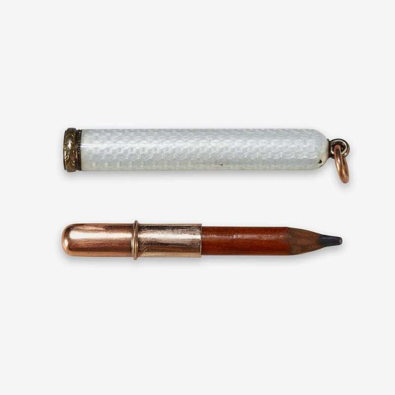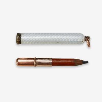 A Fabergé two-color gold and guilloché enamel pencil Fabergé, workmaster marks of August Holming, St. Petersburg, 1896-1908