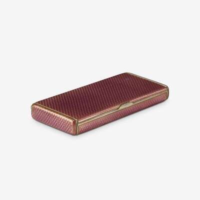 A Russian silver-gilt and raspberry pink guilloché enamel card case Ivan Britzin, St. Petersburg, 1908-1917