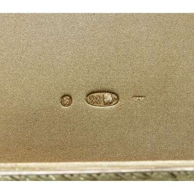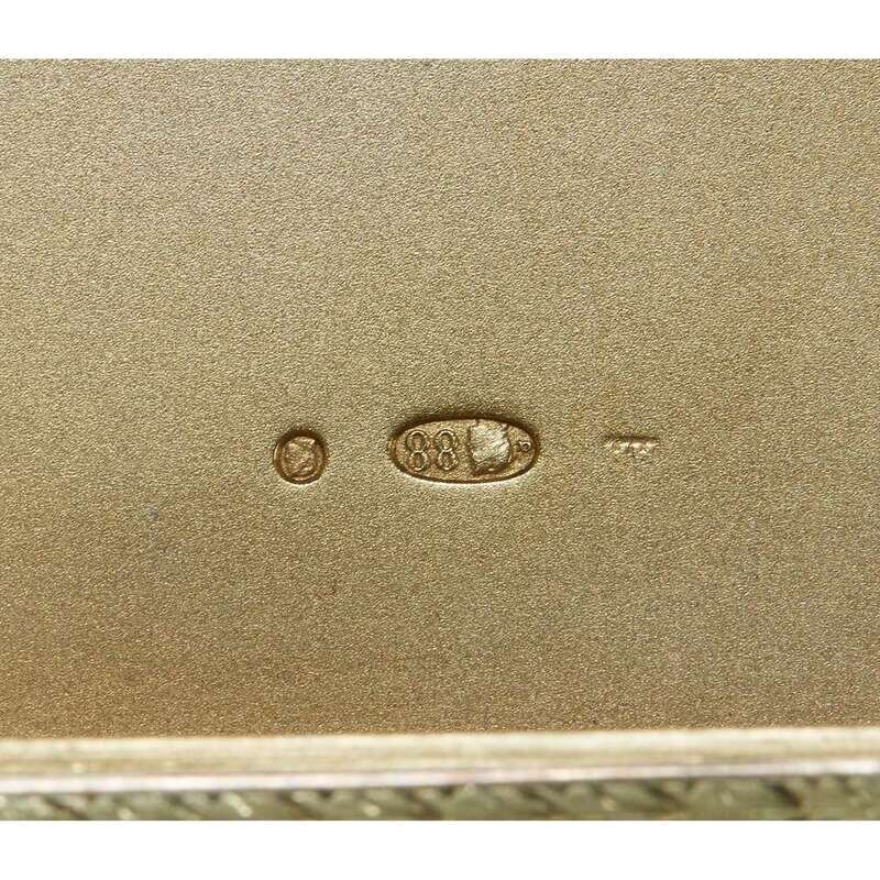 A Russian two color gold-mounted oyster guilloché enameled silver-gilt cigarette case Andrei Adler, St. Petersburg, 1908-1918