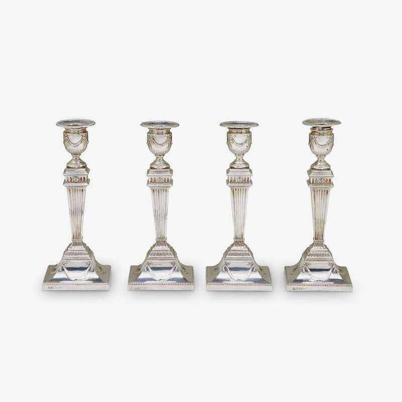 Four Victorian silver candlesticks Hawksworth, Eyre & Co., Ltd., Sheffield, 1890-91