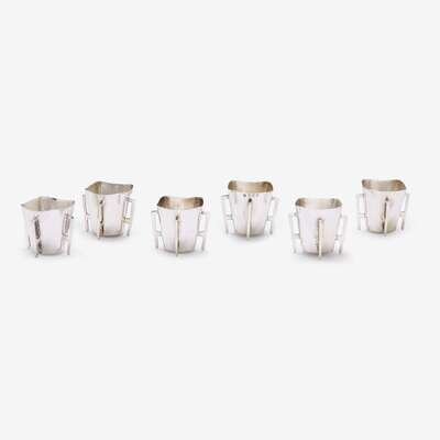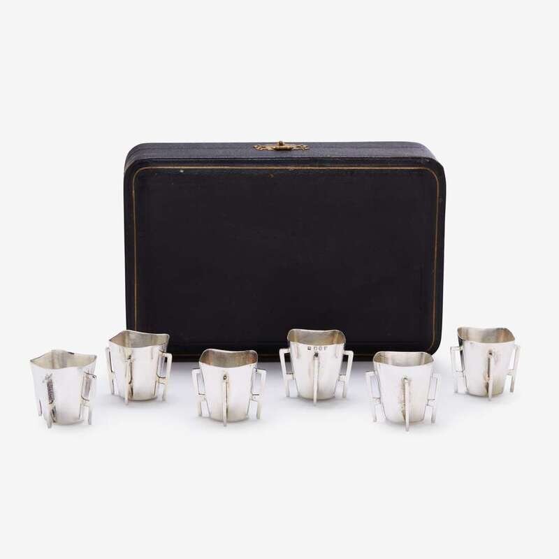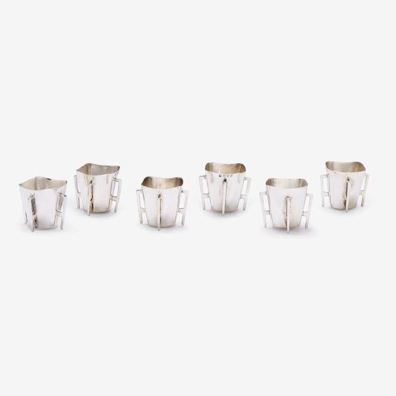 Each of square form with circular base and four angular handles. (6).
