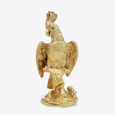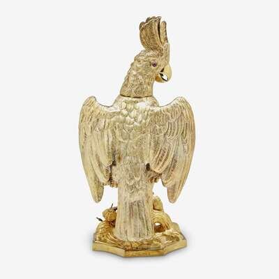 A German silver-gilt and gem-set ewer in the form of a cockatoo Hanau, circa 1900, with import marks for London