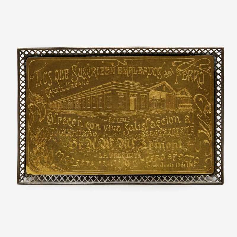 A Peruvian high-karat gold presentation plaque Lima, Peru, circa 1907