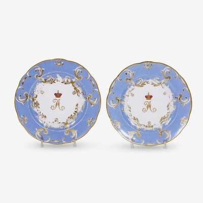 A pair of Russian porcelain plates from the "Grand Duke Alexander Nikolaevich Service" Russian Imperial Porcelain Factory, St. Petersburg, 1855-1881