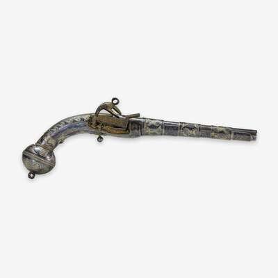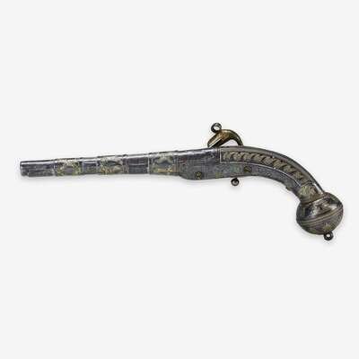 A Russian silver-gilt and niello mounted steel pistol apparently unmarked, circa 1825