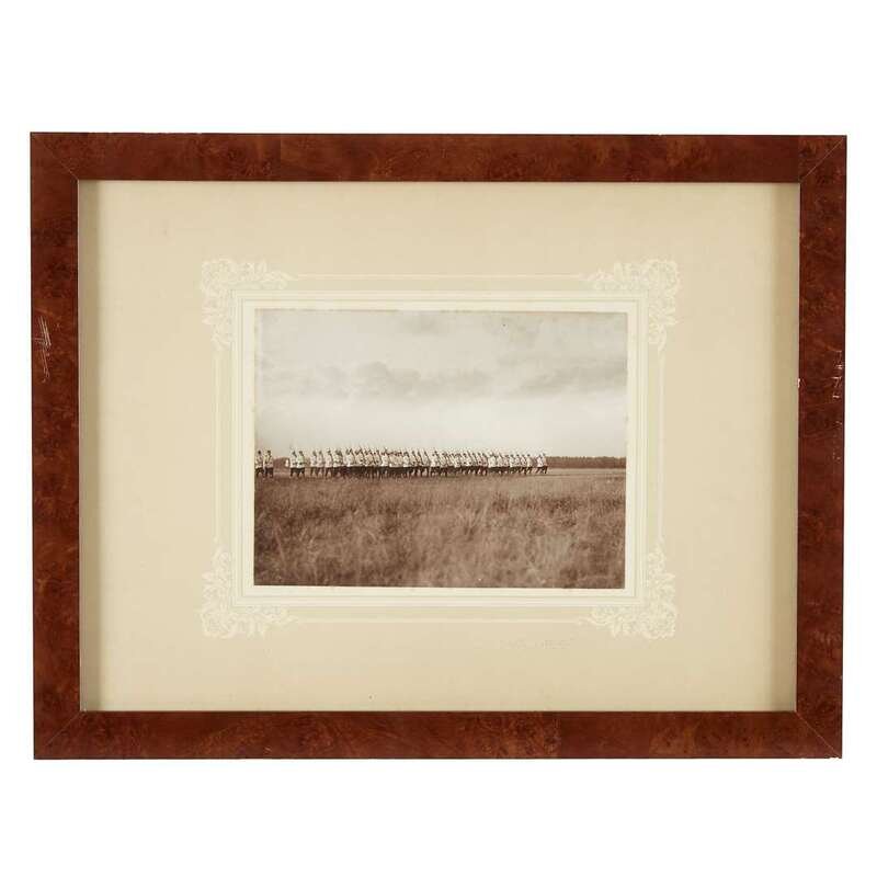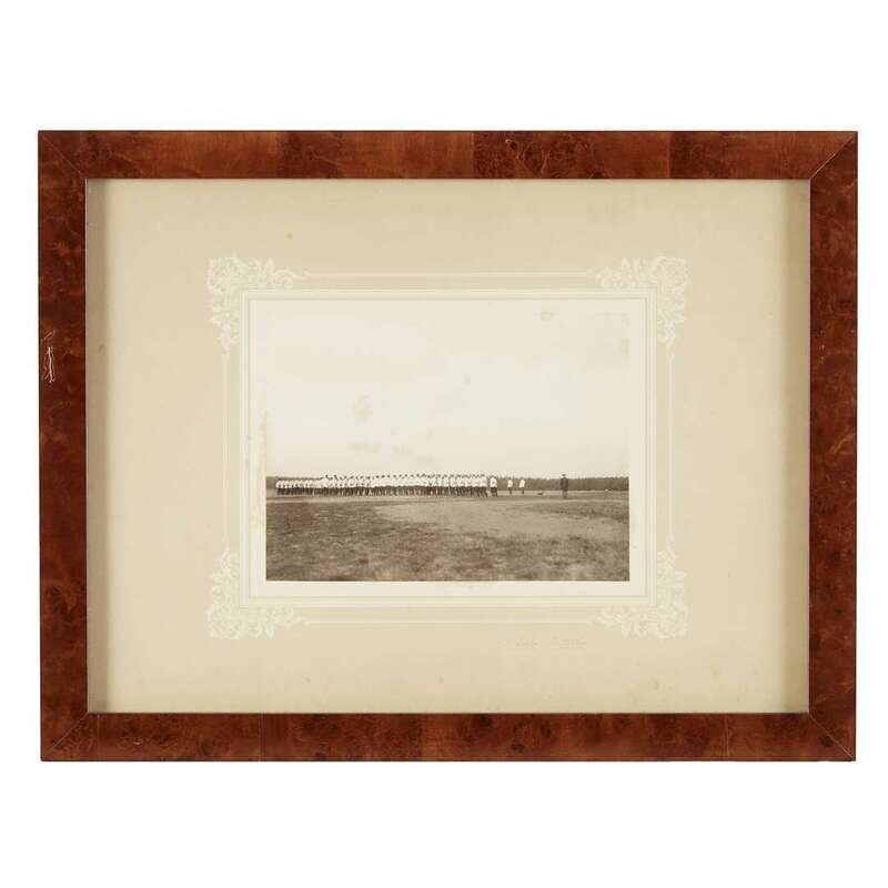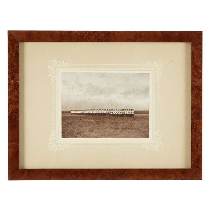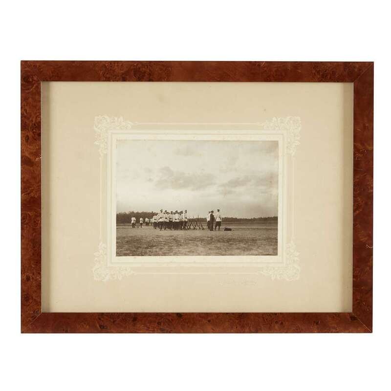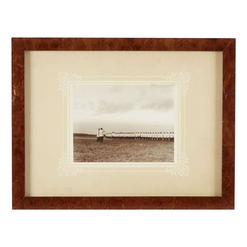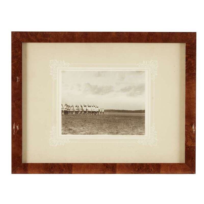 Thirteen photographs mounted on card and framed, depicting manoeuvres of the Imperial regiments at Krasnoe Selo and other locations, under the direction of Grand Duke Michael Alexandrovich (visible in several photographs), brother of Emperor Nicholas II Alexandrovich. (13).