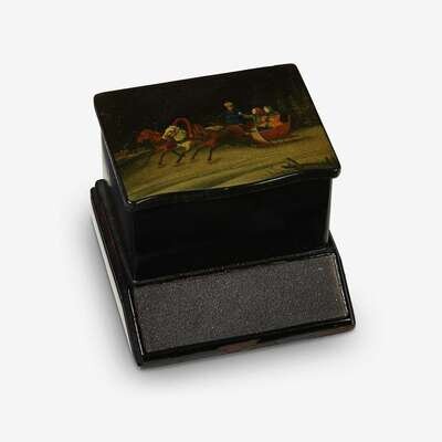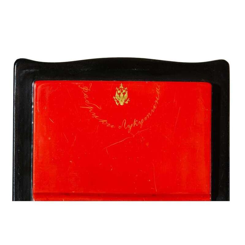 A Russian lacquer match box Lukutin with gold Imperial Warrant, Moscow, circa 1850