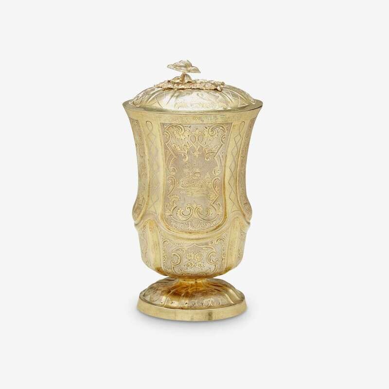 A Russian silver-gilt and covered cup in the baroque revival taste unknown maker EE, Moscow, 1848