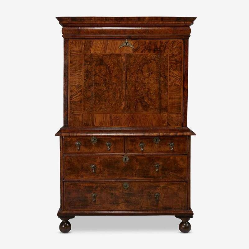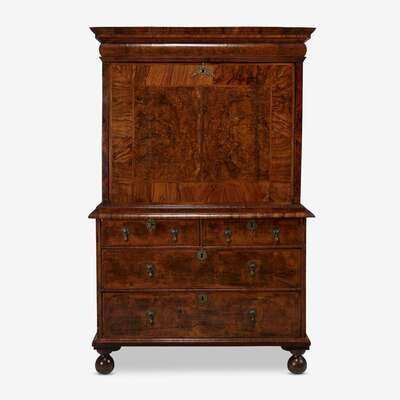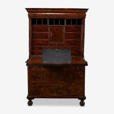 A William & Mary featherbanded burl and figured walnut fall-front secretary desk circa 1700