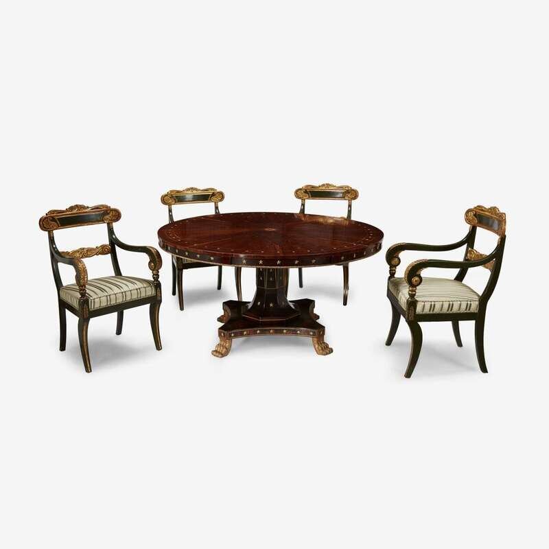 A fine William IV inlaid and ormolu mounted rosewood parquetry and amboyna pedestal table circa 1835
