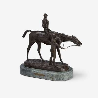Bronze, dark brown patina, signed in cast "J. Willis Good"; raised on green marble base.