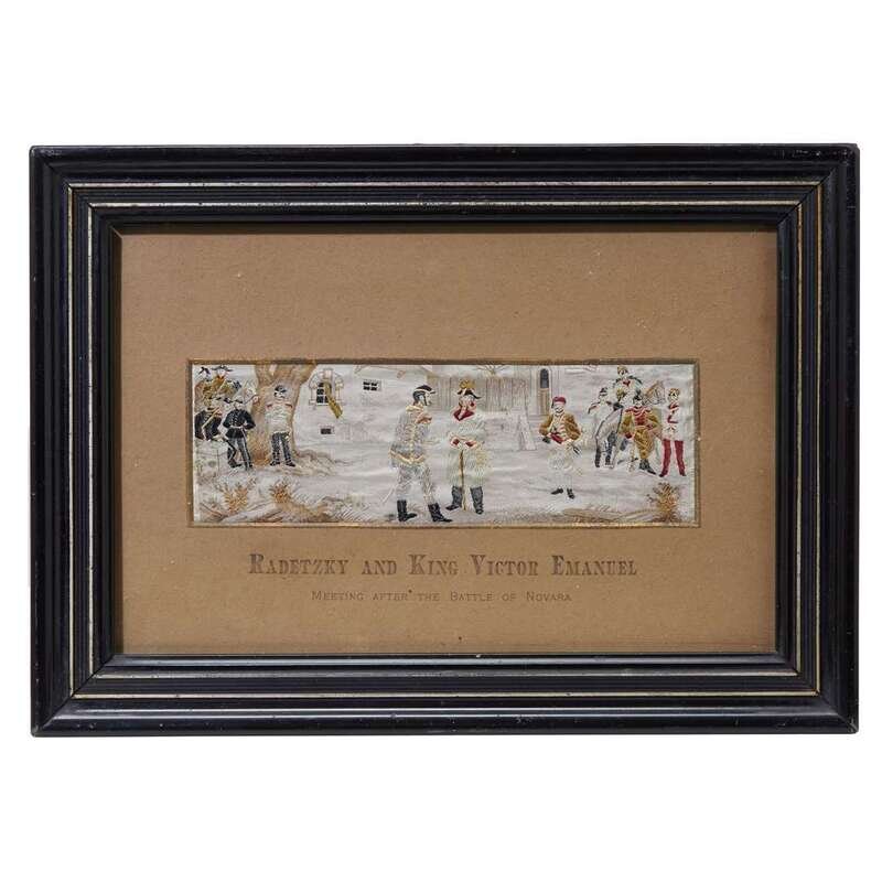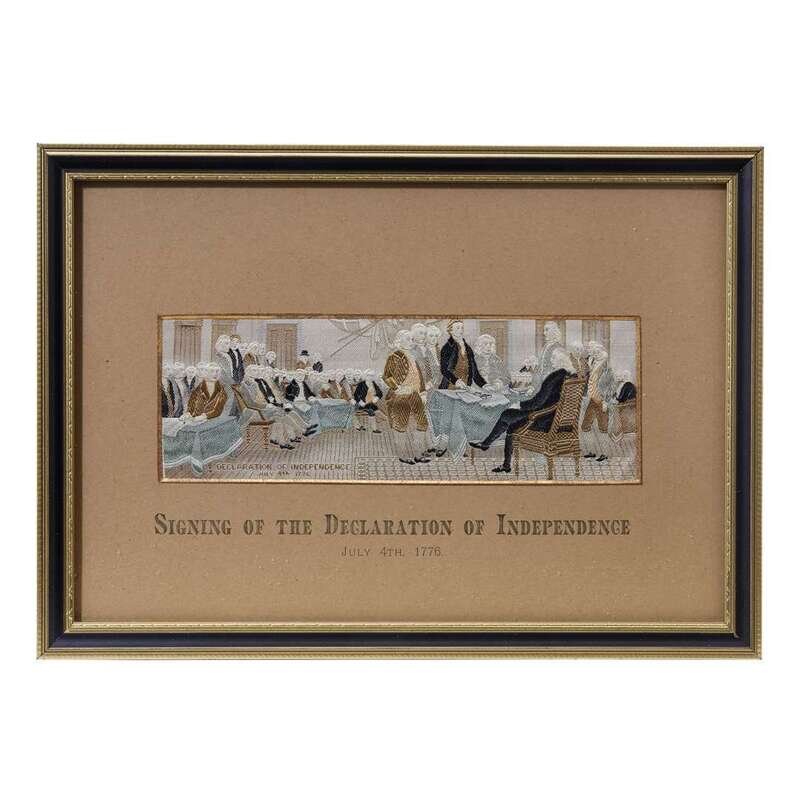 A collection of six framed stevengraph silk pictures including "Signing of the Declaration of Independence" third quarter 19th century