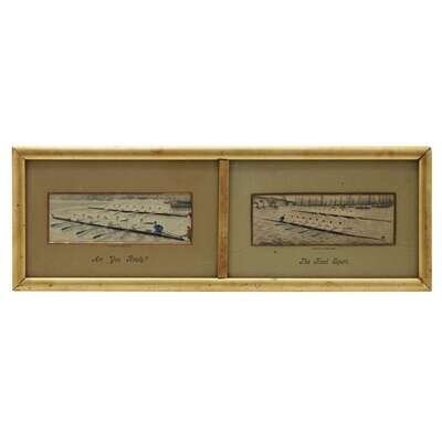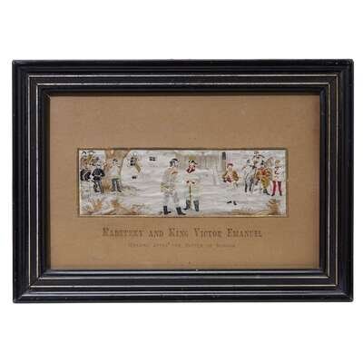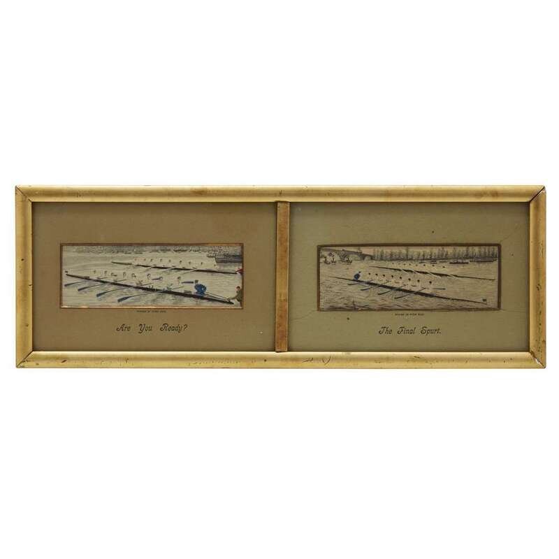 Comprising "Signing of the Declaration of Independence", "Radetzky and King Victor Emanuel Meeting After the Battle of Novara", "The Good Old Days", "Turpin's Ride to York, the Tollgate Leap", and two pictures of the Oxford-Cambridge Boat Race, "Are you Ready?" and "The Final Spurt", framed together. (5).