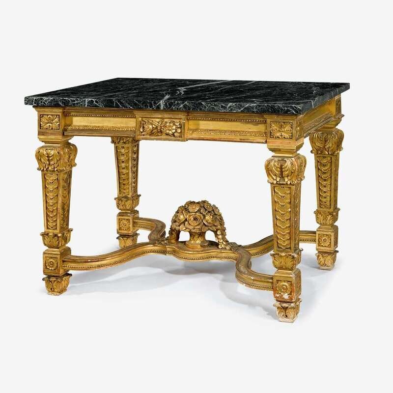 A Louis XIV style carved giltwood verde antico marble top center table late 19th/early 20th century