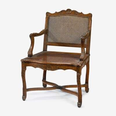 A Louis XV provincial carved walnut caned fauteuil à la reine circa 1730