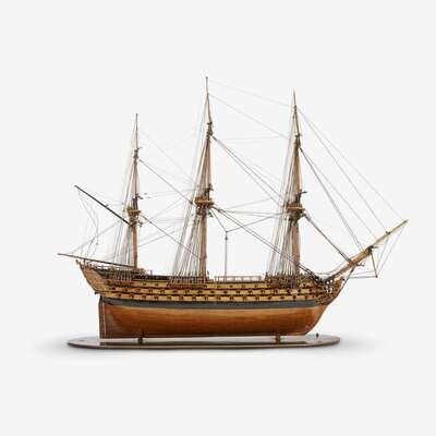 A fine Napoleonic prisoner-of-war built boxwood model of the 74-gun ship-of-the-line L'Invincible early 19th century