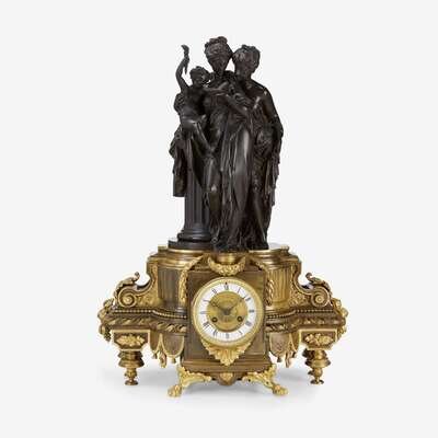A Napoleon III gilt and patinated bronze figural mantel clock after Albert-Ernest Carrier-Belleuse (French, 1824-1887), circa 1862