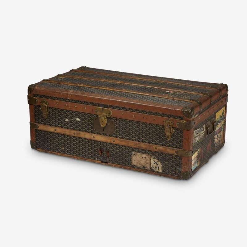 A Maison Goyard printed canvas covered traveling trunk early 20th century